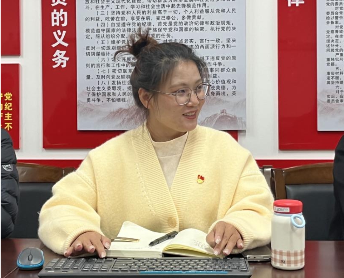教师第二党支部组织委员廖素兵从理论学习、工作亮点、不足及未来展望等几方面进行汇报。她指出,当前党支部需强化宣传工作,提升实效与质量,提前谋划党员发展工作,规范做好资料归档。着力创新特色活动,增强教育吸引力同时加强党员日常教育管理,持续提升队伍政治素养。