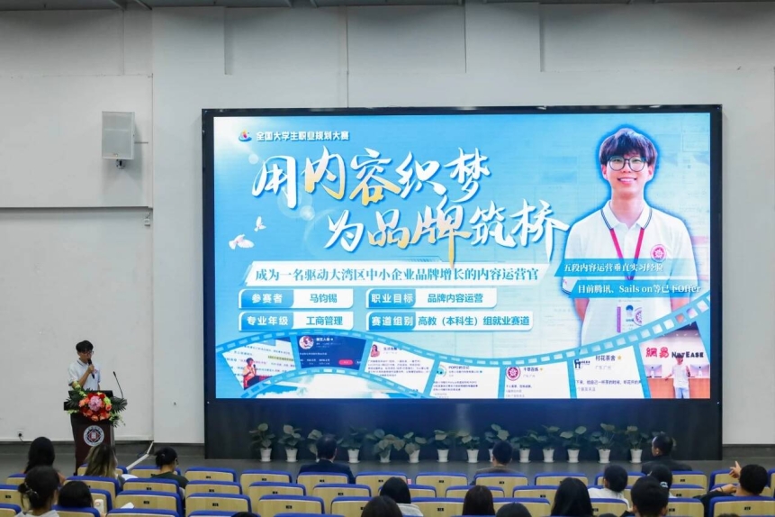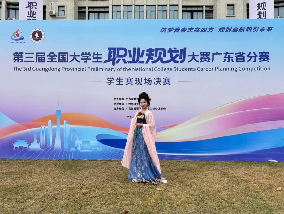 本届大赛以“筑梦青春志在四方,规划启航职引未来”为主题,聚焦大学生职业发展规划与就业能力提升,是推动高校生涯教育与人才培养的重要平台。自2025年10月启动以来,管理学院高度重视、积极响应,依托专业特色开展系统化指导,广泛动员学生参与,最终杜梓溦同学成功晋级省现场决赛,代表学校赴广州航海学院参加最终比拼。